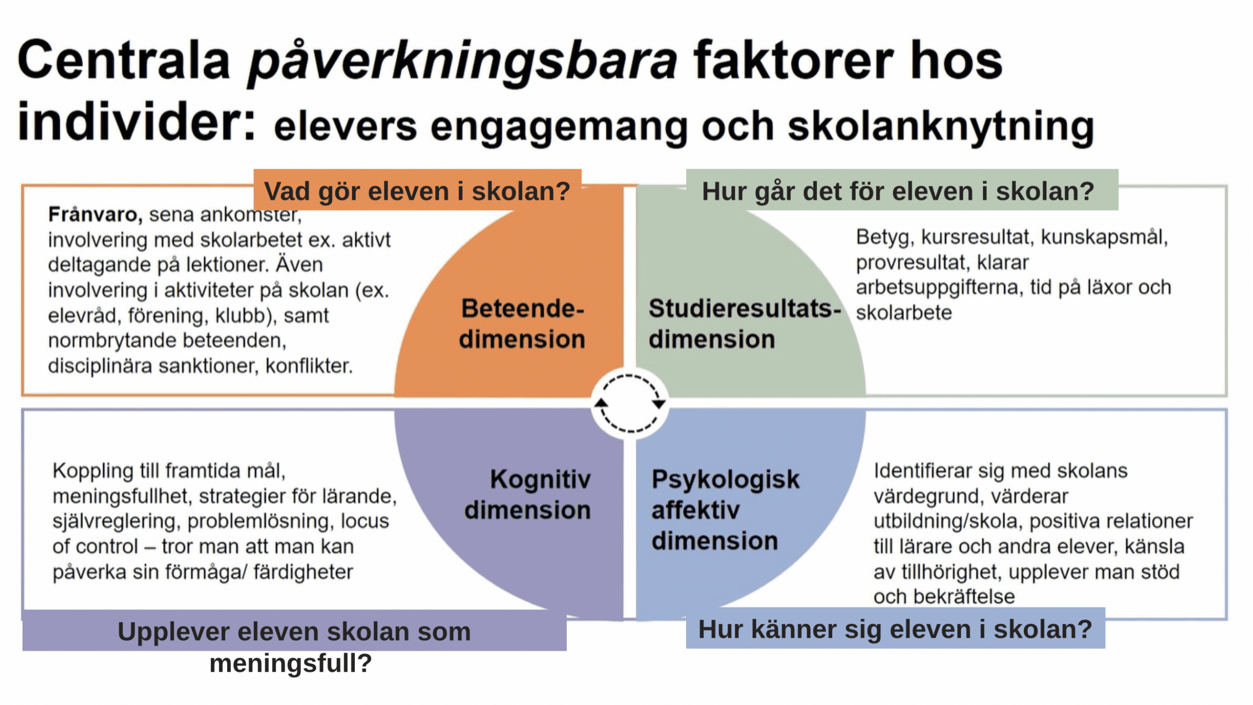 Modell baserad på amerikansk forskning som Mariestad använder för att förstå vilka faktorer som påverkar elevernas skolgång.